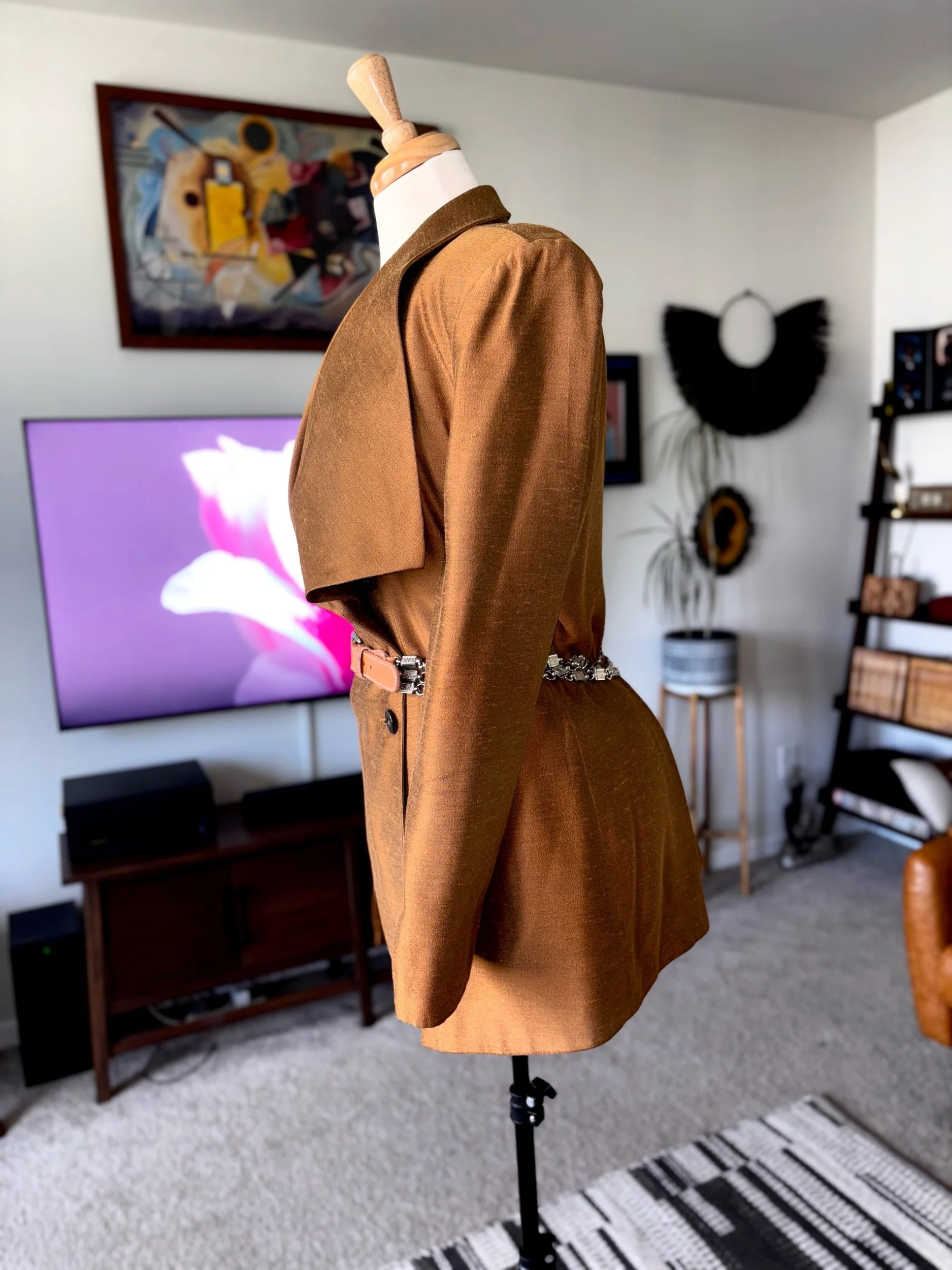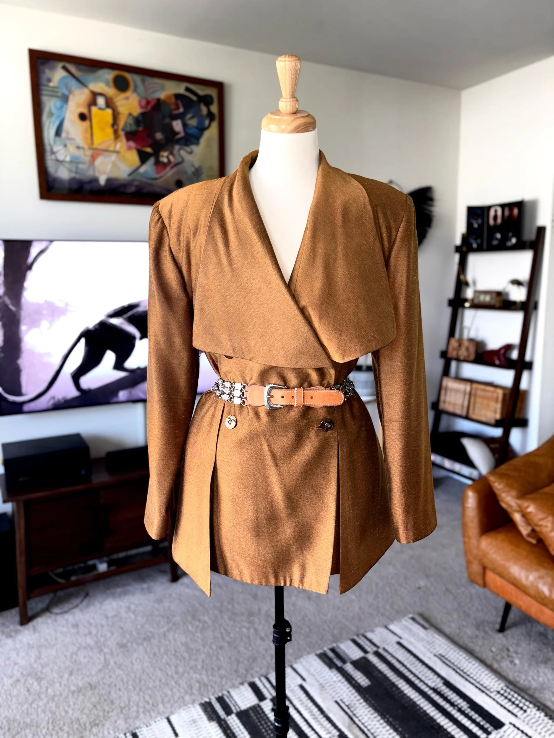 Step up your style game with this stunning vintage double-breasted blazer, crafted from unique shark suit material that blends durability with a sleek finish.