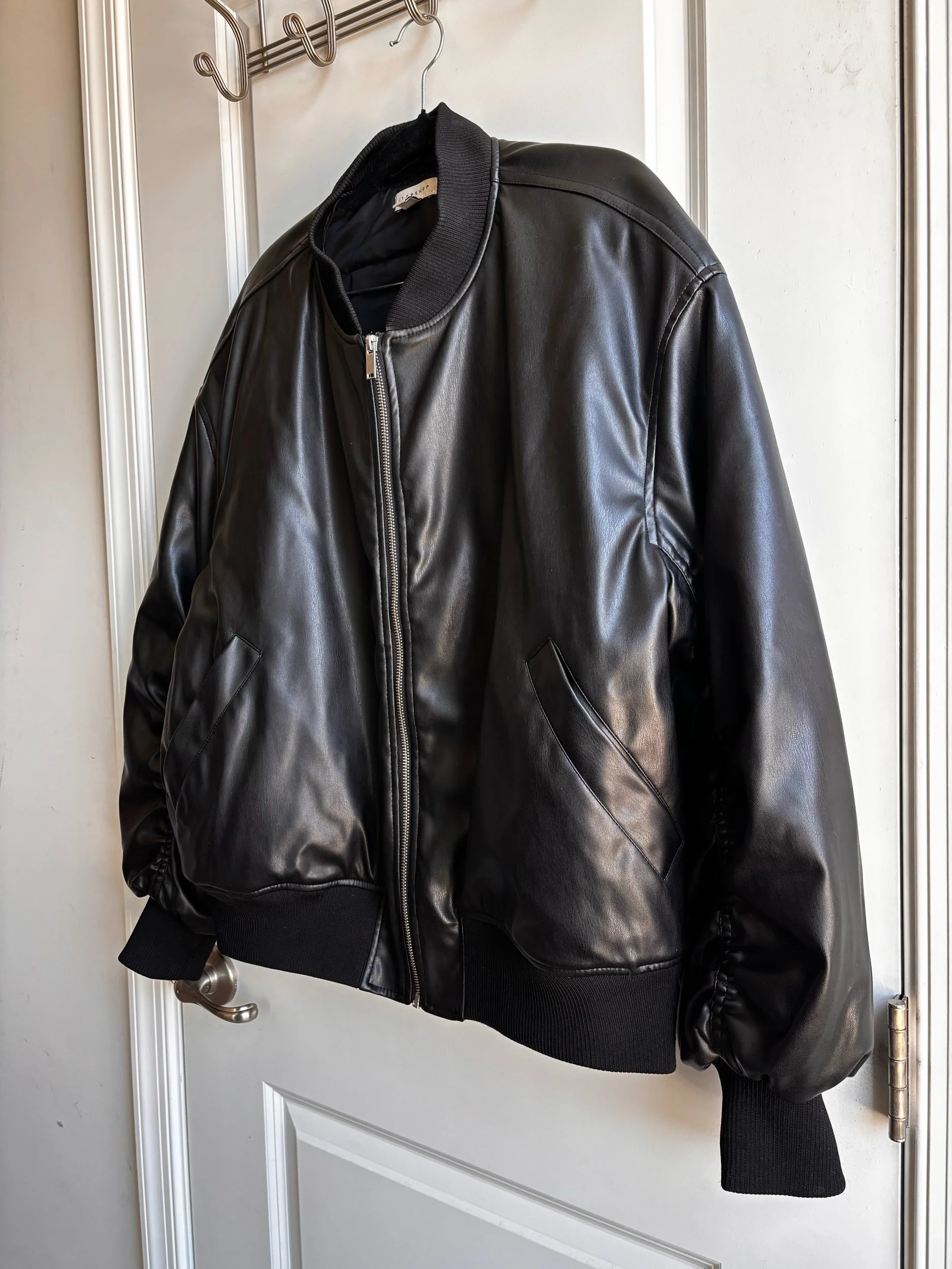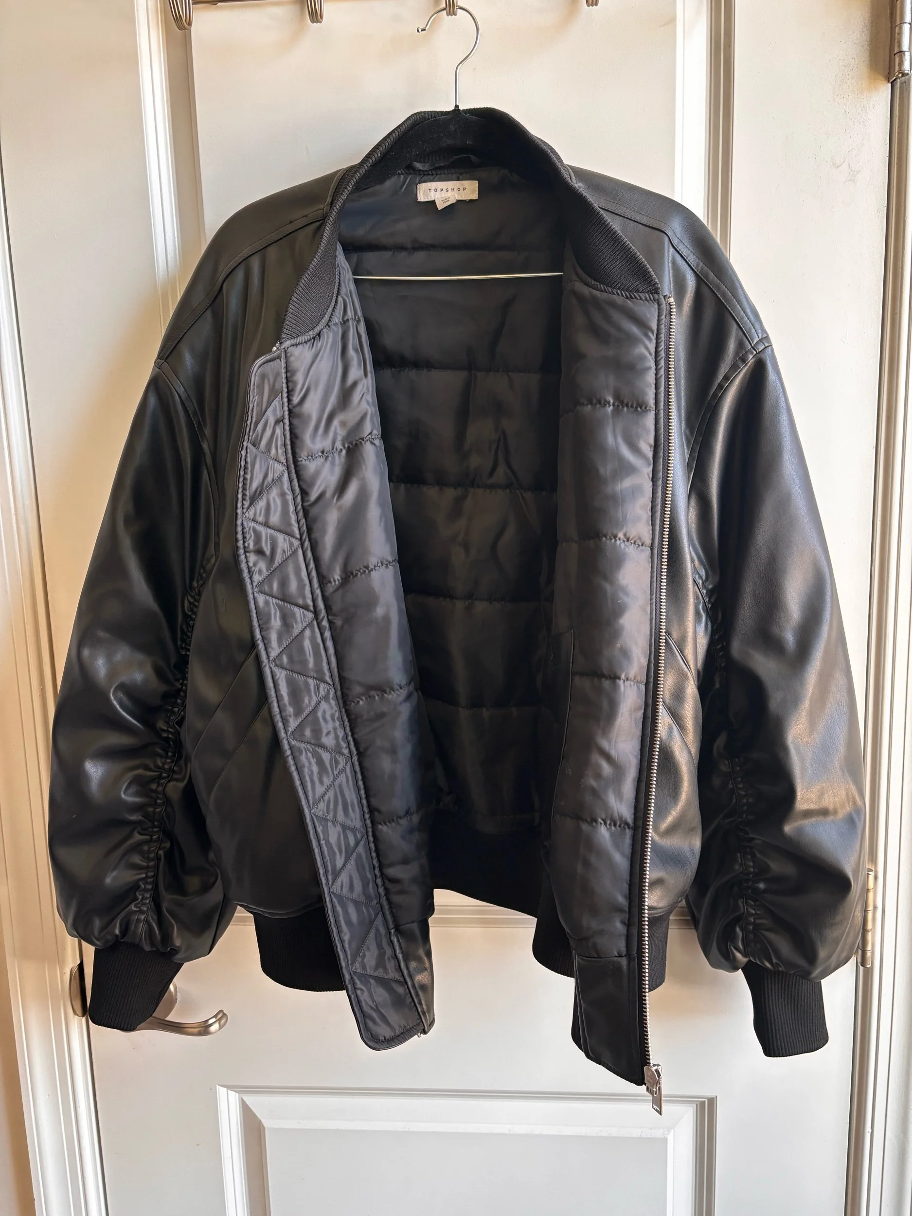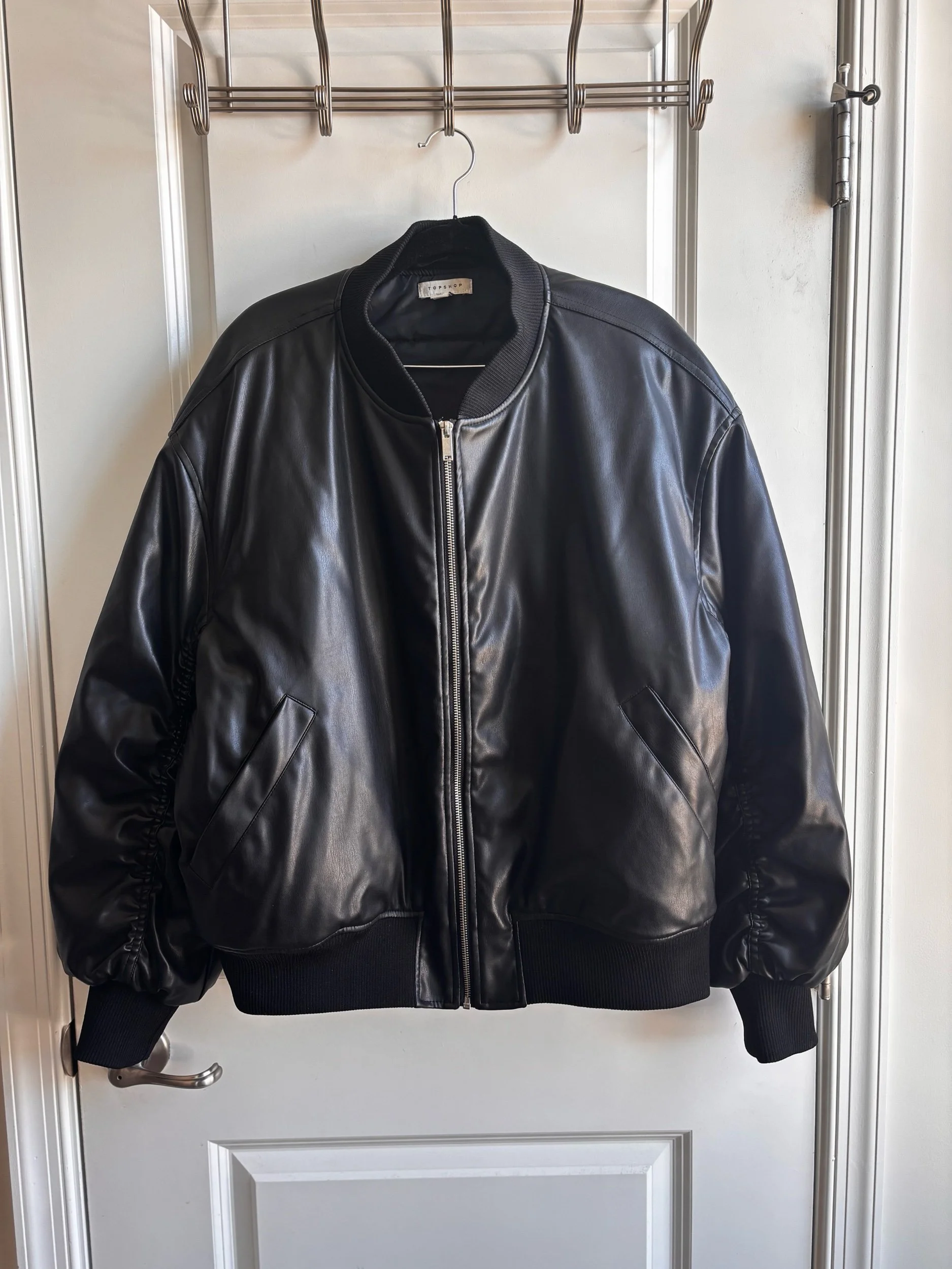 Topshop Faux Leather Crop Bomber Jacket - Size 10