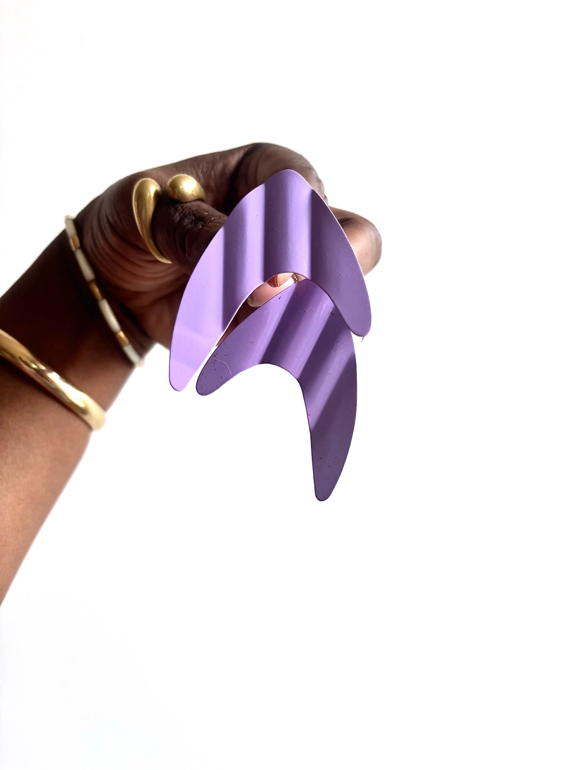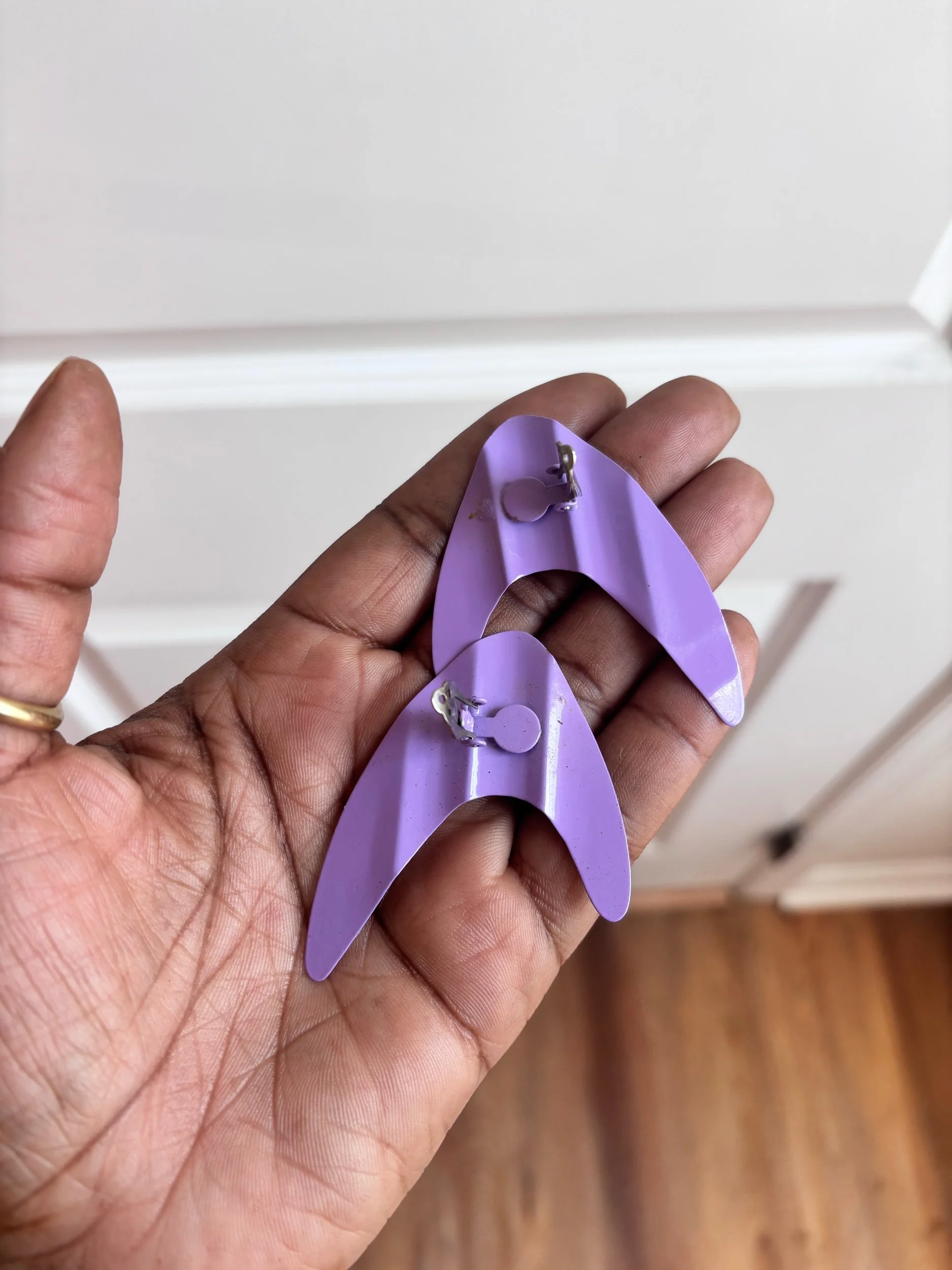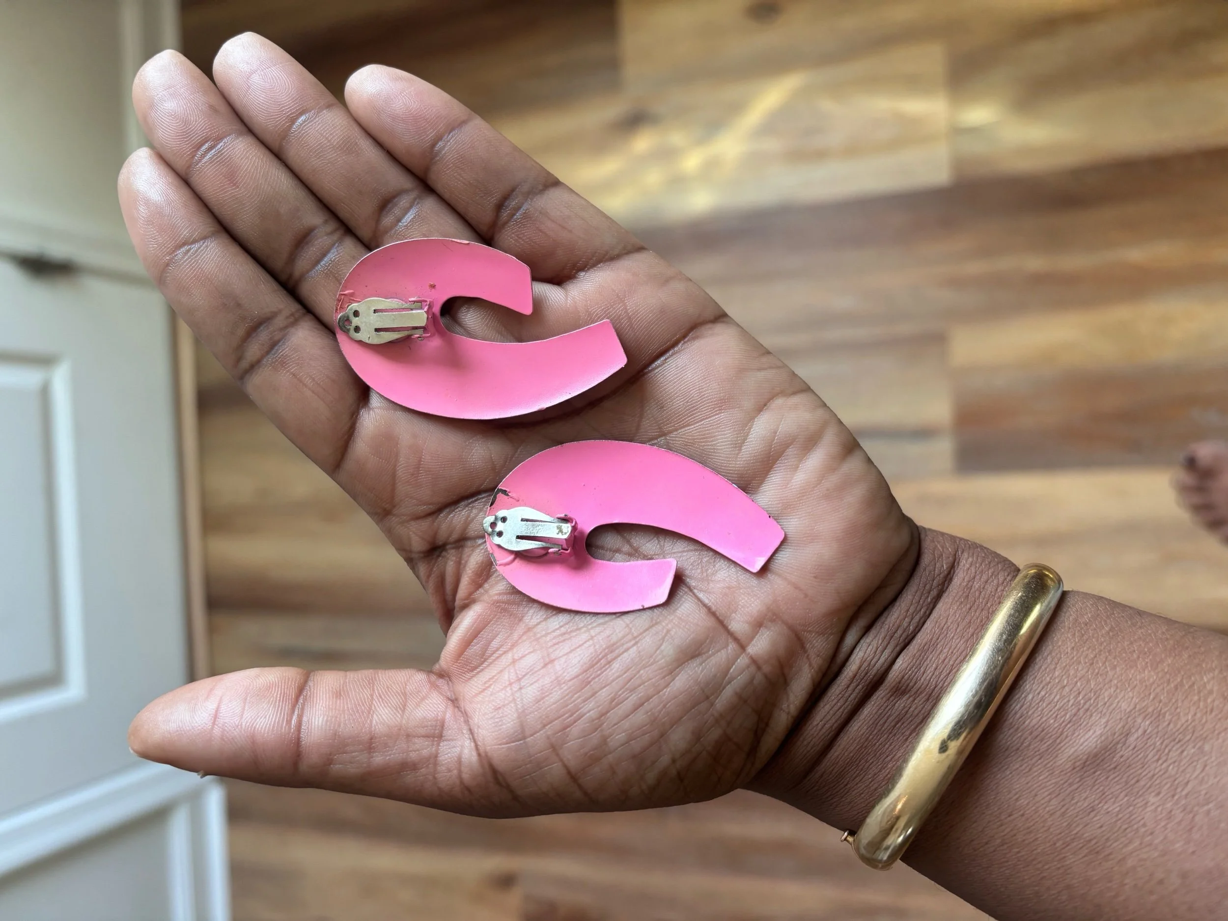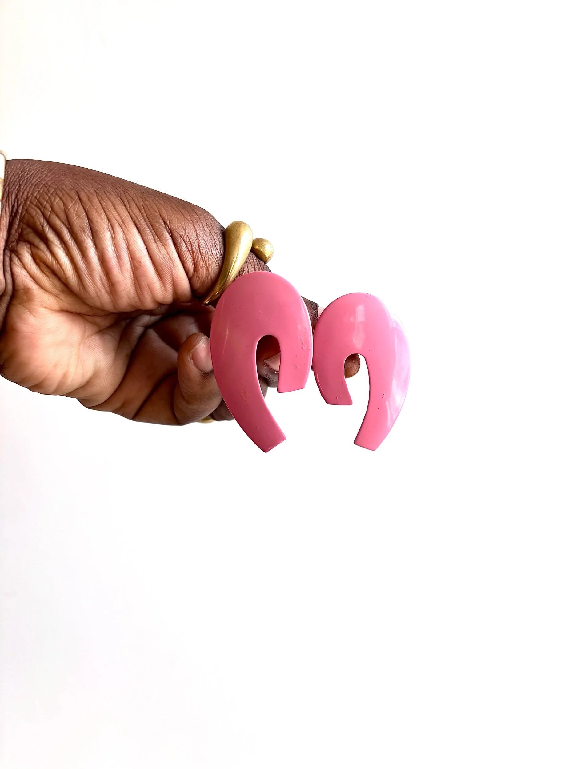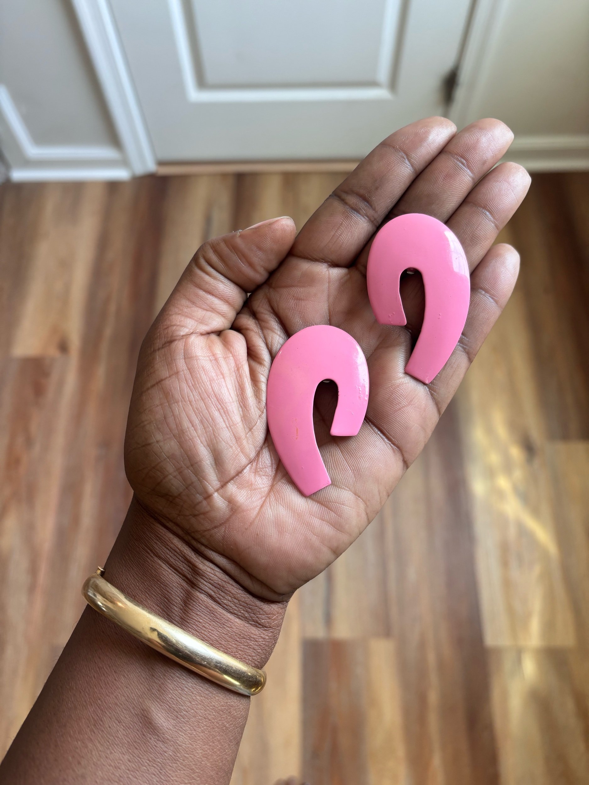 Striking clip-on earrings in a bold bubblegum pink finish, crafted from metal with a smooth, sculptural curved silhouette. The glossy coating paired with the weight and structure of metal gives these a modern, elevated edge while still keeping that playful pop of color.