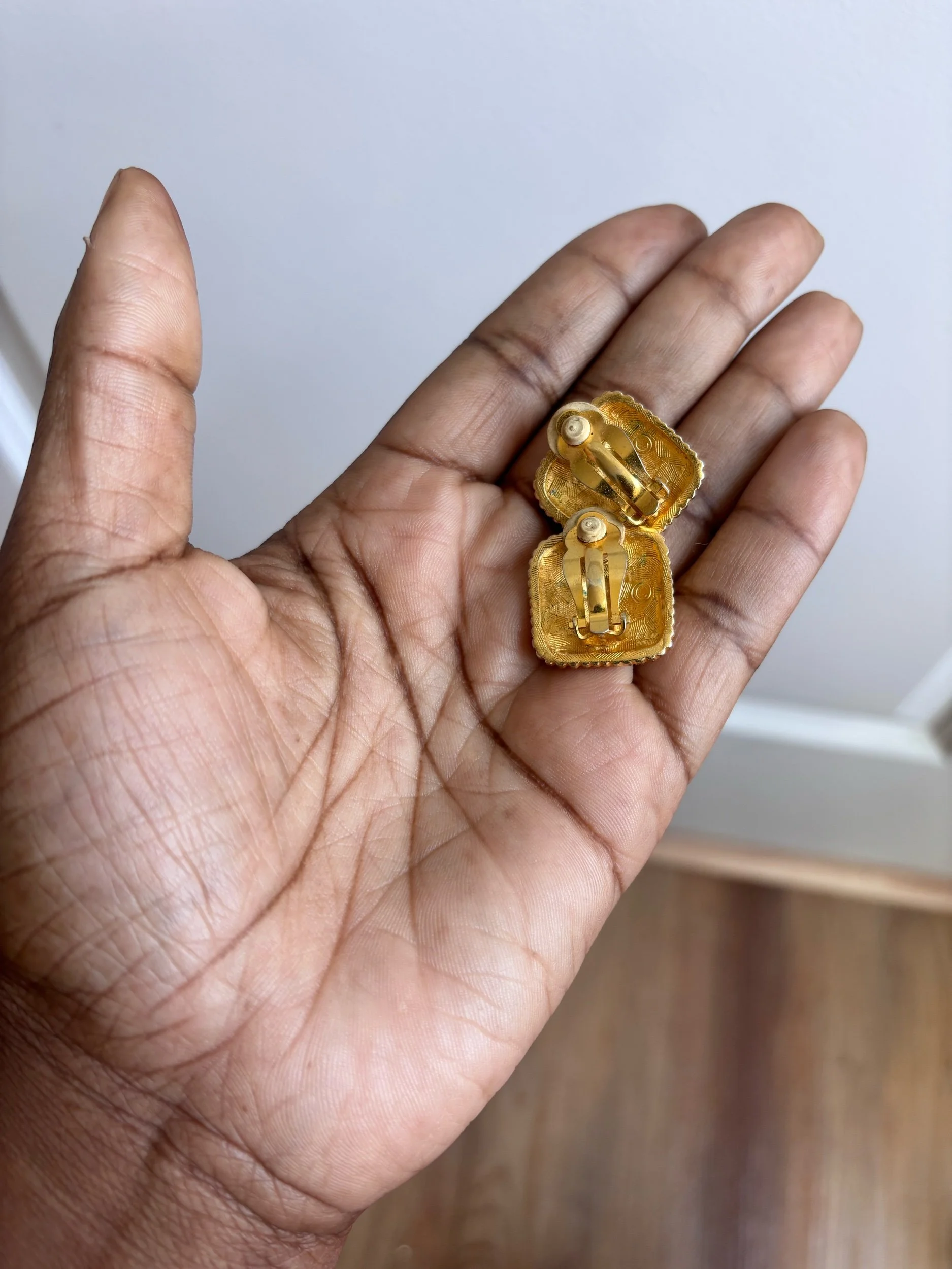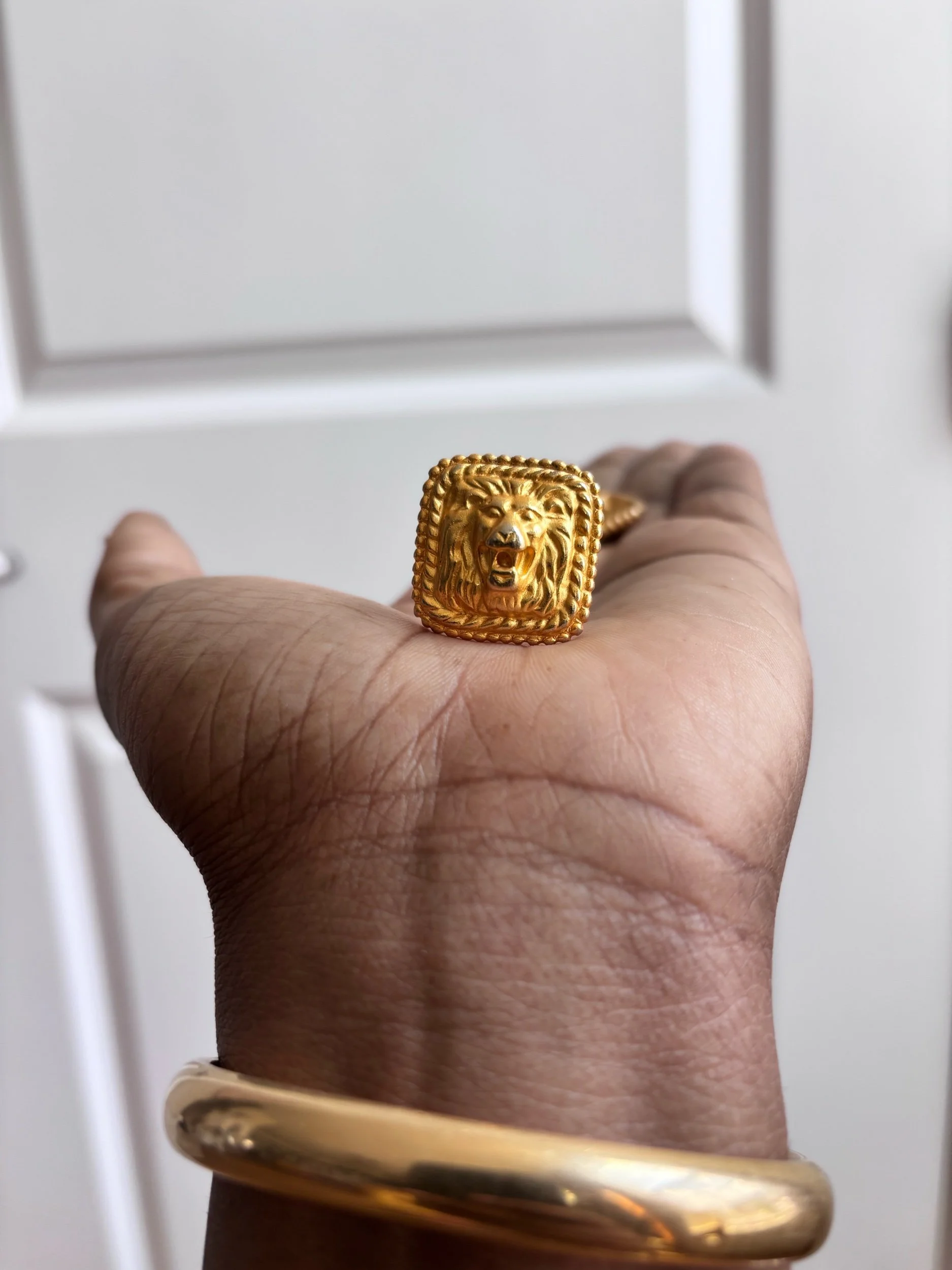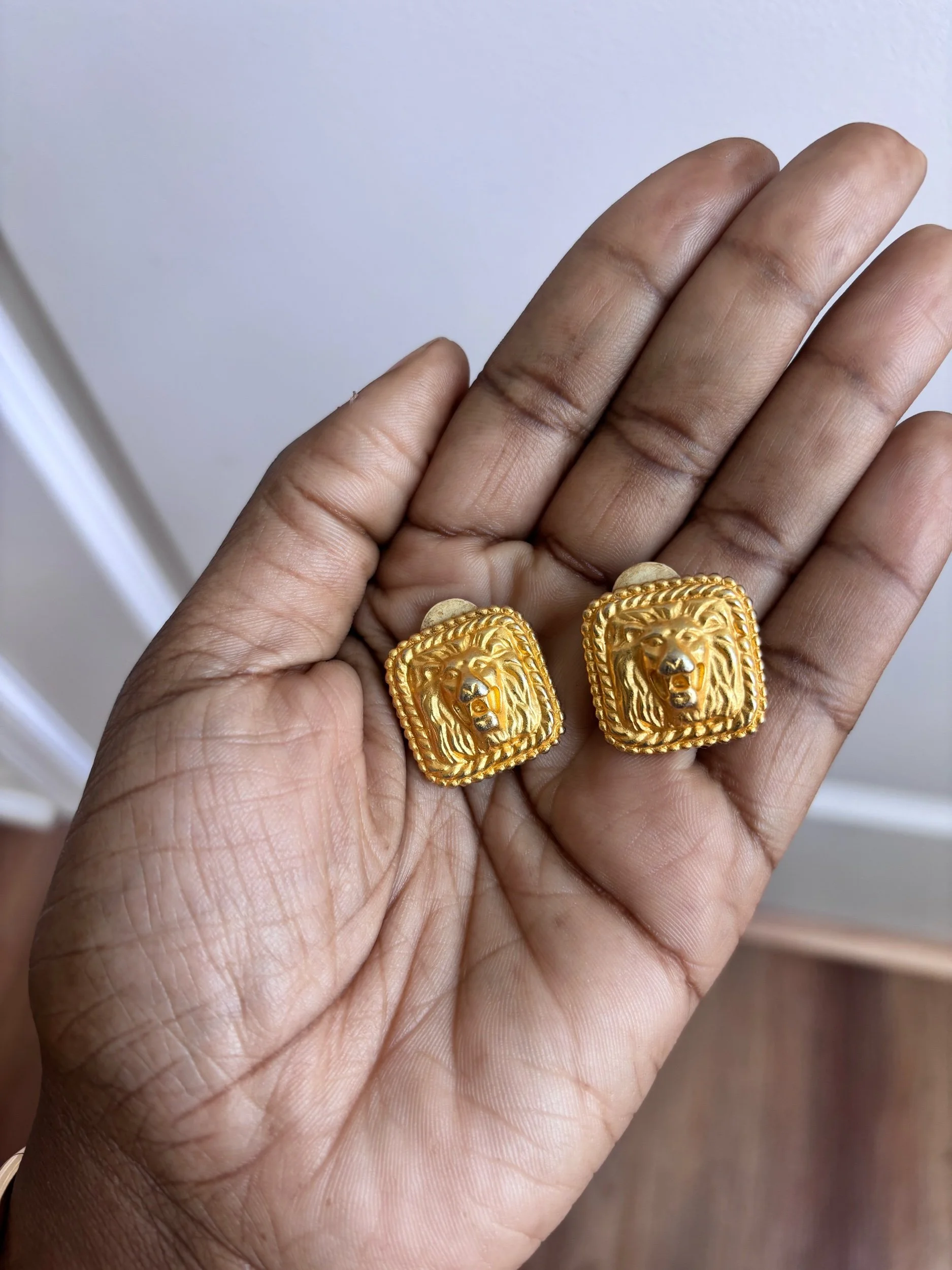 Bold, sculptural, and rooted in presence—these vintage gold-tone clip-on earrings feature a detailed lion head set within a textured rope frame. They carry that quiet luxury energy with just enough edge, giving you a statement without needing to overdo anything. Whether styled up or thrown on with something simple, they hold their own.