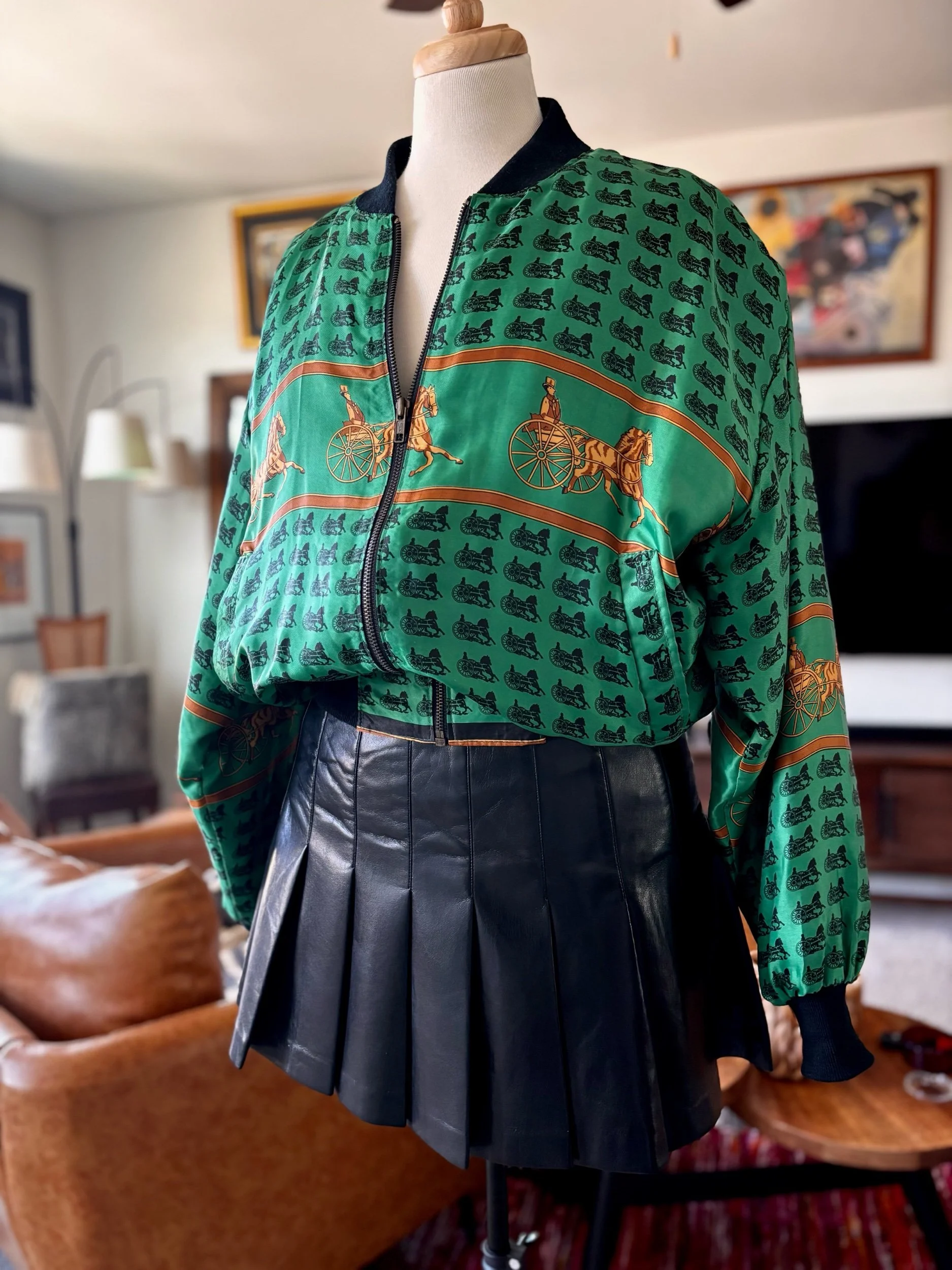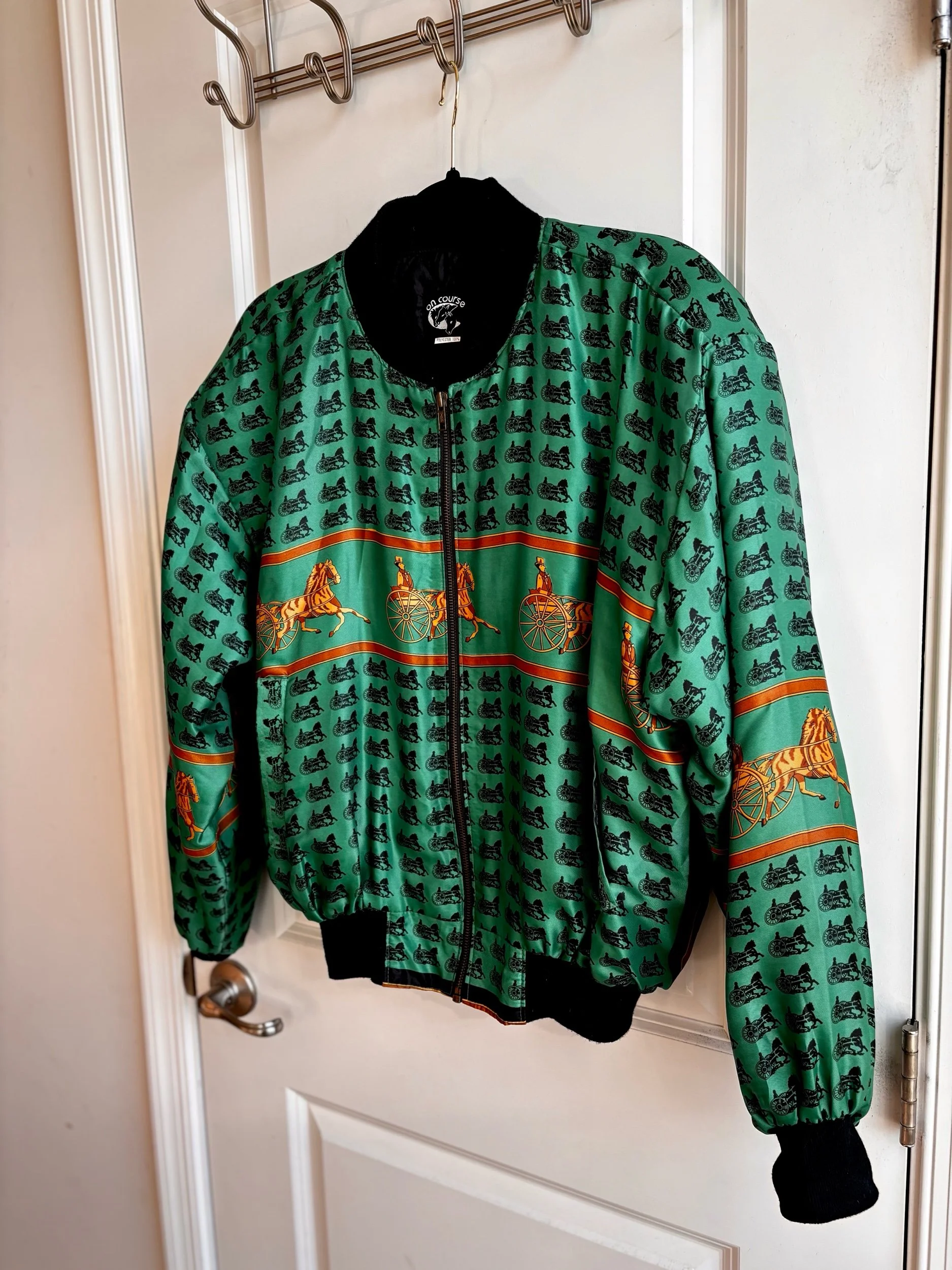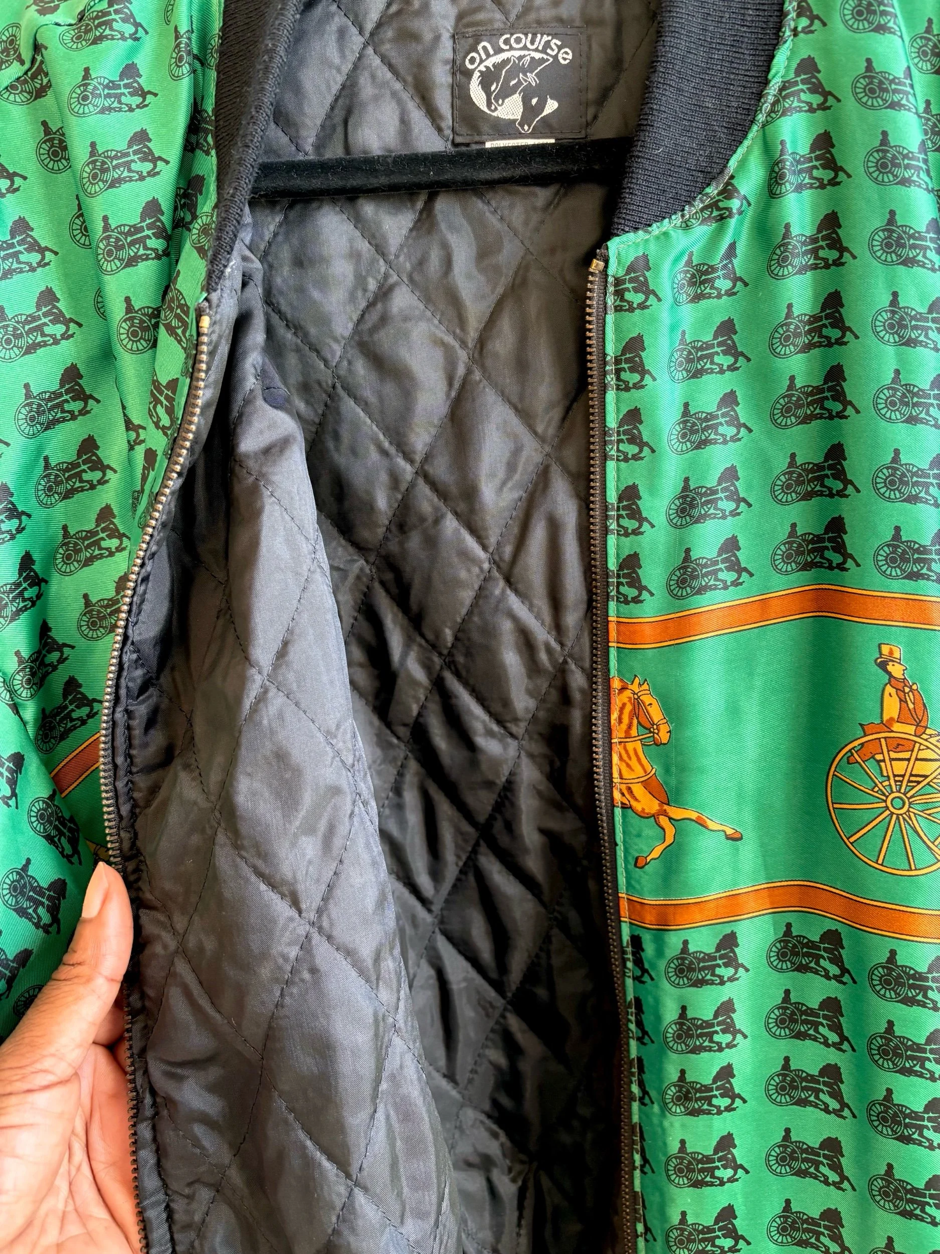 On Course Vintage Horse Carriage Quilted Bomber Size Medium