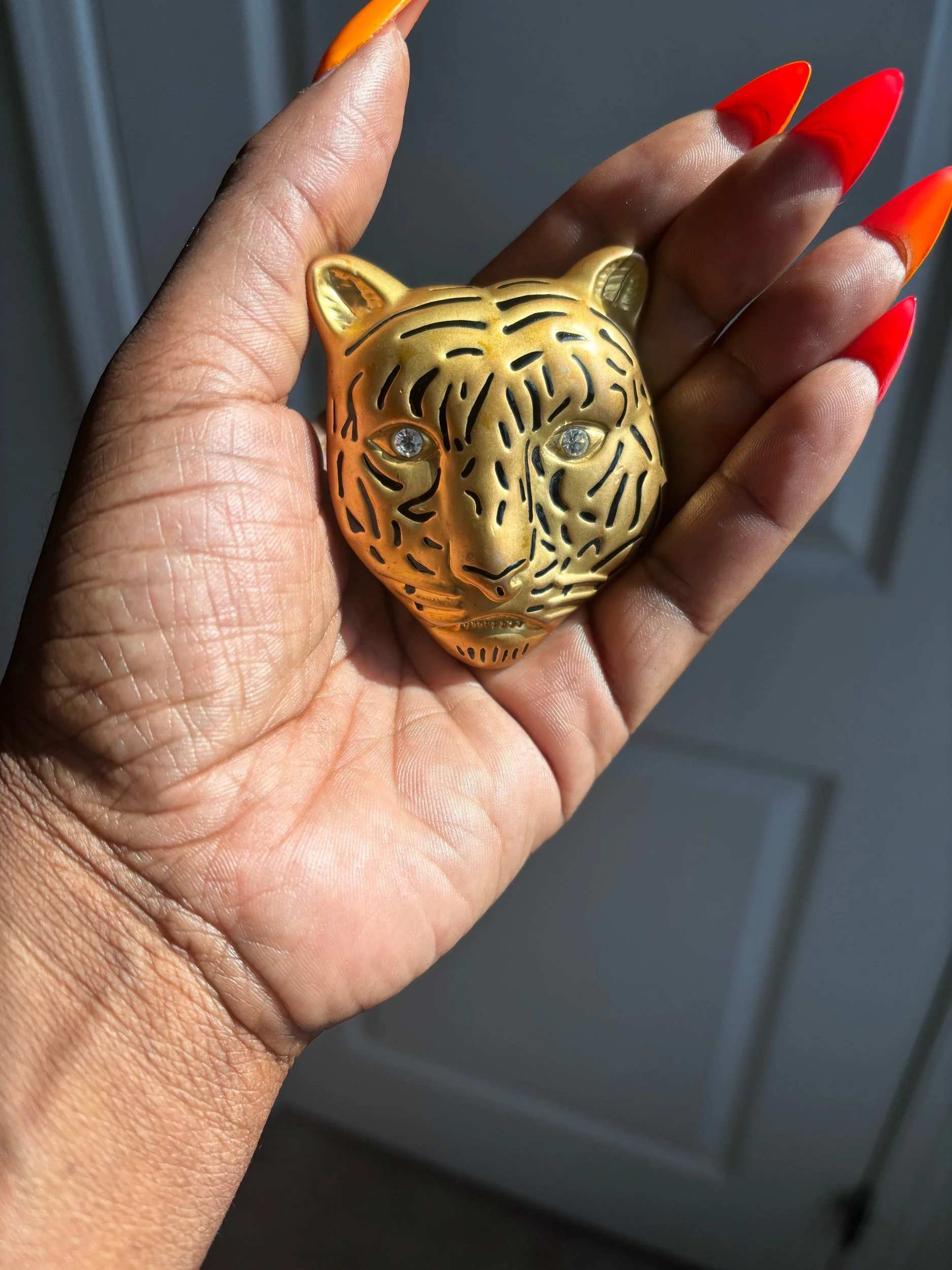 Featuring a bold, hammered gold finish that catches the light at every angle, this unsigned piece offers the luxe vibe of high fashion without the label.