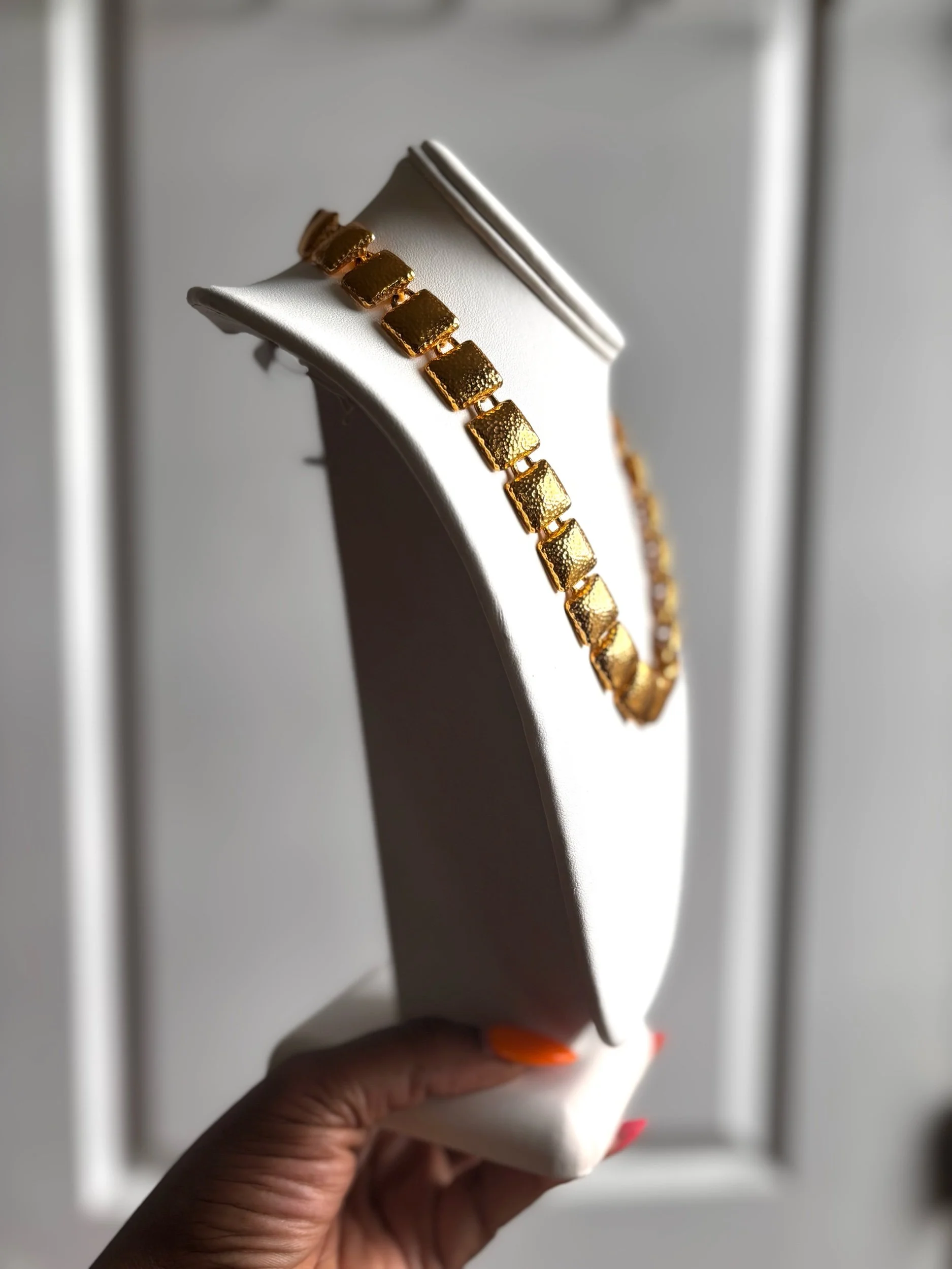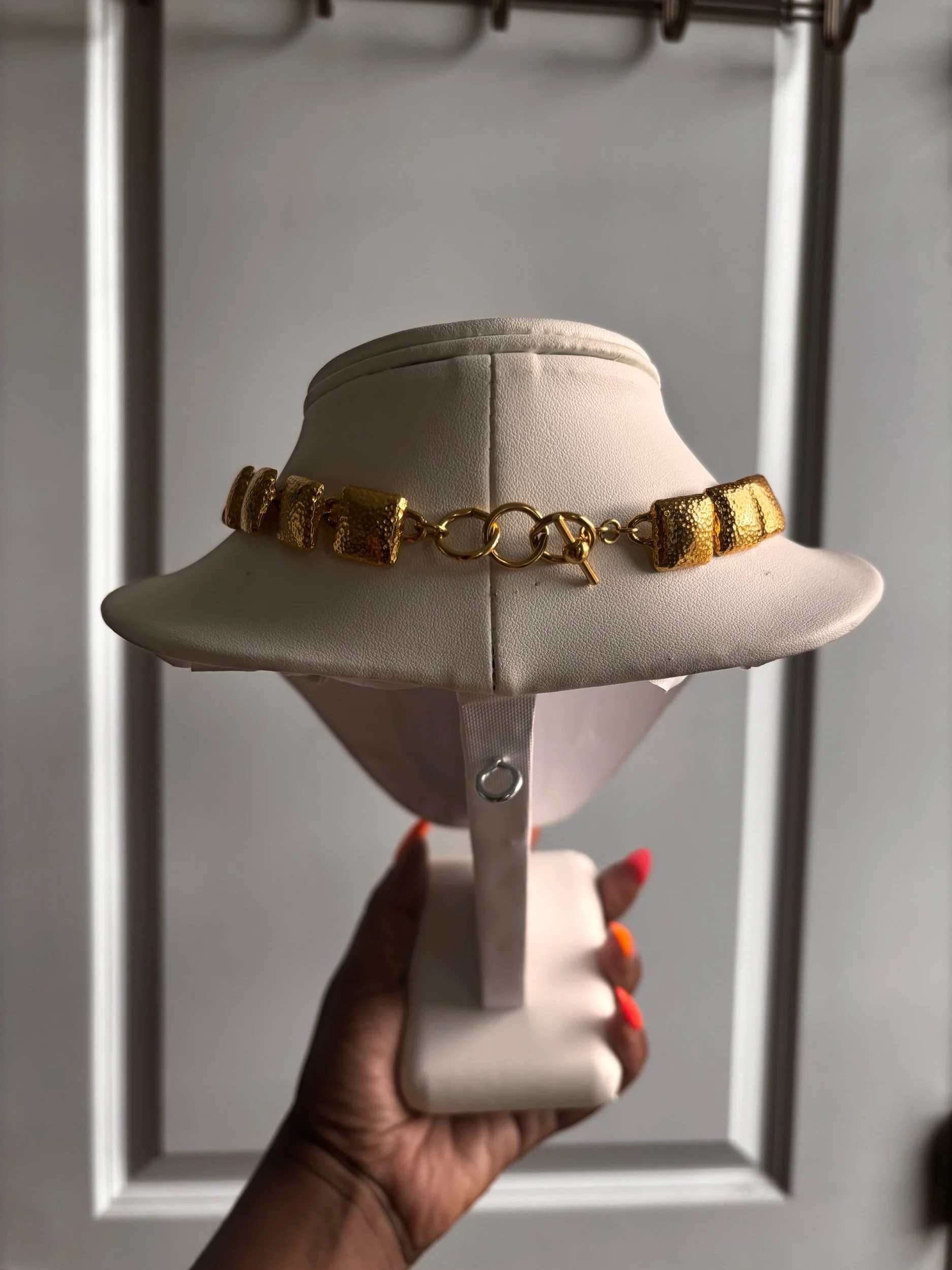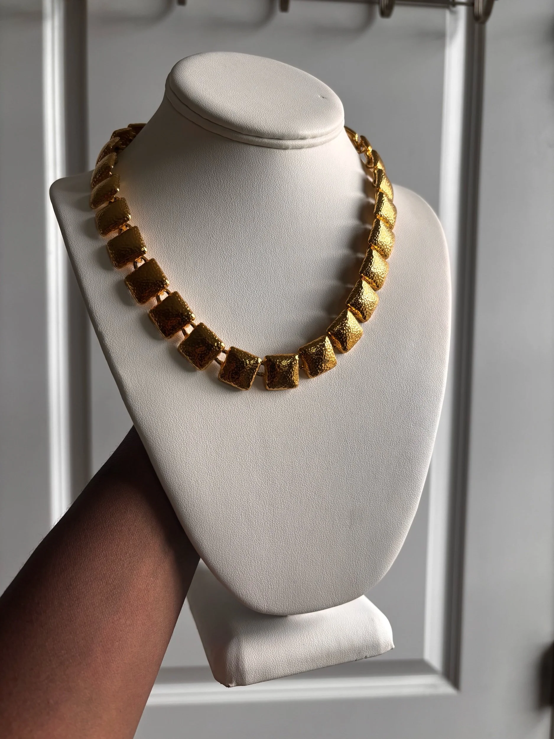 Givenchy Style Vintage Unsigned Hammered Gold Choker.